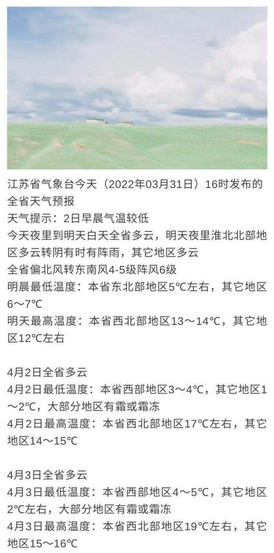 4月2-3日江蘇早晨氣溫較低 部分地區(qū)有霜凍