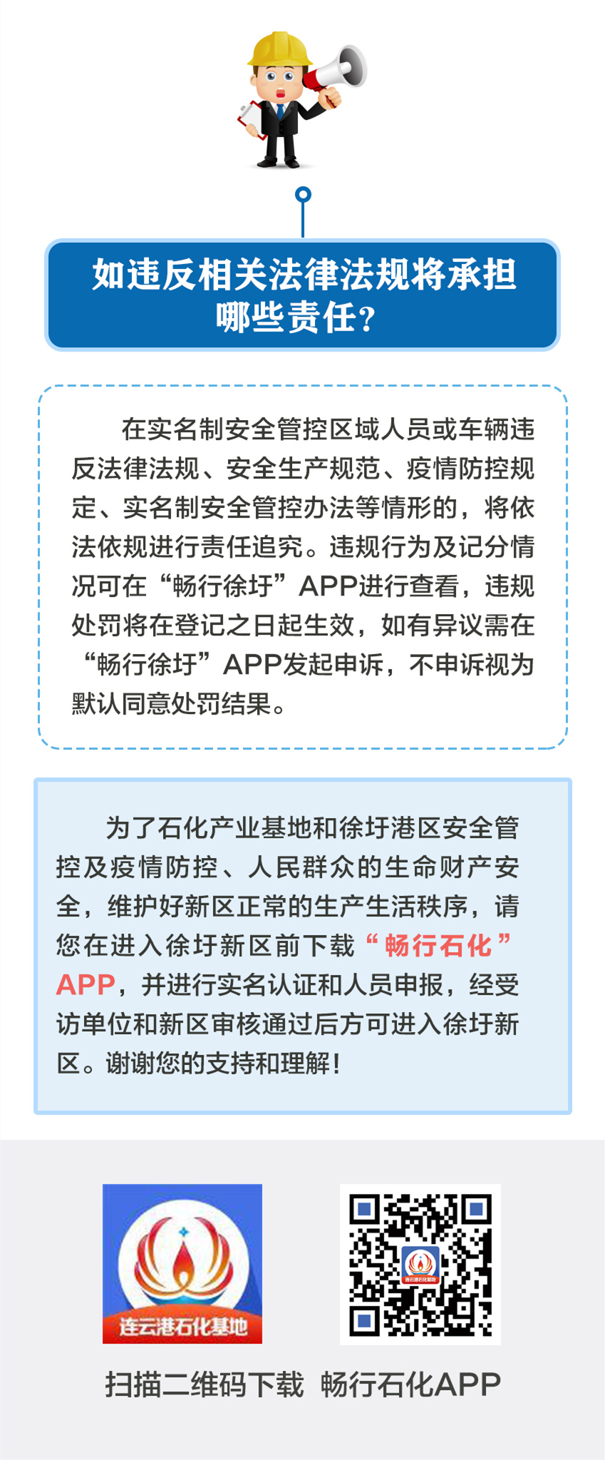 5月1日起,進(jìn)入連云港徐圩新區(qū)徐新路、燒香支河(含駁鹽河)、南復(fù)堆河、海濱大道合圍區(qū)域及徐圩港區(qū)規(guī)劃范圍內(nèi)的單位職工、外協(xié)單位人員及來(lái)訪人員均須在“暢行石化”APP實(shí)名認(rèn)證申報(bào),經(jīng)受訪單位批準(zhǔn),報(bào)請(qǐng)實(shí)名制安全管控辦公室審核通過(guò)后入園。
