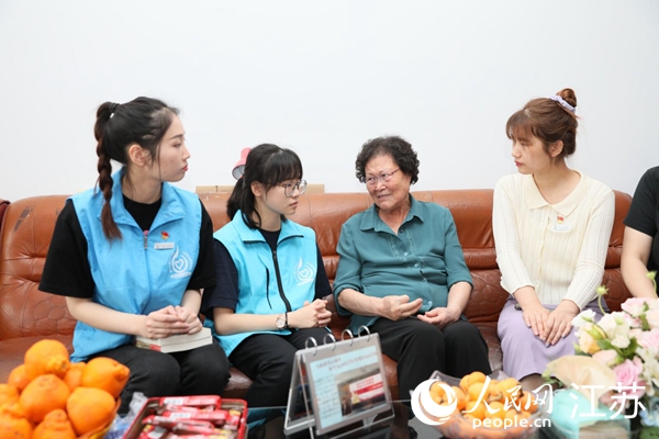2021年,“小雨滴”志愿者參與雨花臺(tái)紅色尋訪,看望吳振鵬烈士女兒。受訪對(duì)象供圖