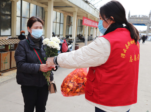 志愿者引導(dǎo)群眾“鮮花換紙錢”。灌云縣委宣傳部供圖