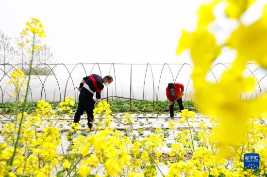 4月5日,江蘇省宿遷市泗洪縣雙溝鎮(zhèn)四河片區(qū)雪二新村菜農(nóng)在田間勞作。