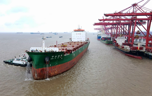 一艘大型貨輪正停靠太倉港。太倉海事局供圖
