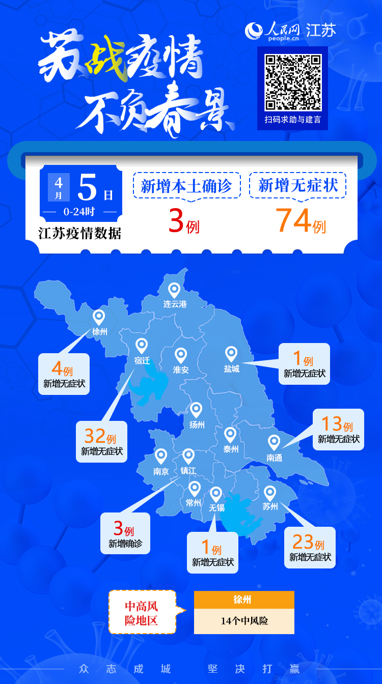 4月5日江蘇新增本土確診病例3例 本土無(wú)癥狀感染者74例