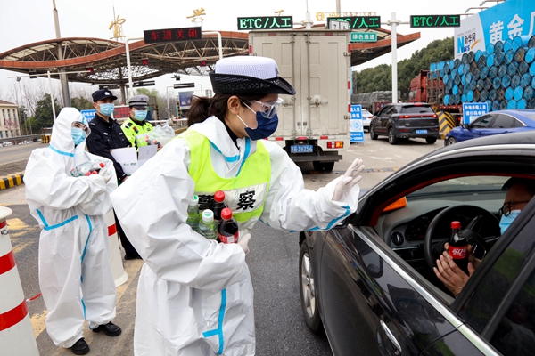 宜興市公安局交警大隊(duì)女民警、女輔警組建女子團(tuán)分赴各高速路口、卡口等疫情查驗(yàn)點(diǎn),協(xié)助各查驗(yàn)點(diǎn)開(kāi)展查驗(yàn)工作,同時(shí)在工作間隙及時(shí)地為過(guò)往駕駛員送上牛奶、餅干、飲料等物資,緩解駕駛員排隊(duì)候檢的焦慮情緒,更加溫暖有序地開(kāi)展防疫工作,被網(wǎng)友們親切稱(chēng)為“可樂(lè)女警”。