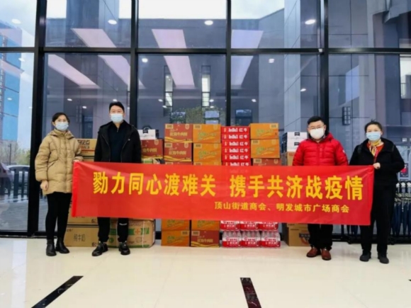 此外,江北新區(qū)工商聯及所屬街道商會還廣泛發(fā)動會員企業(yè)傳遞溫暖,奉獻愛心,各商會會員紛紛捐款。頂山街道商會、沿江街道商會、明發(fā)城市廣場商會等商會代表們緊急采購防護服、醫(yī)用口罩以及面包、牛奶、礦泉水等抗疫物資送到一線防疫工作人員手中。