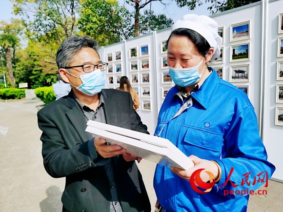南通崇川區(qū)企業(yè)“首席服務(wù)員”王俊榮(左)了解企業(yè)在疫情期間的生產(chǎn)狀況。人民網(wǎng)記者 王繼亮攝