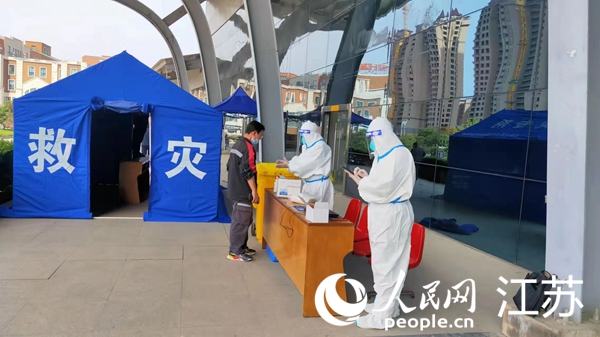 核酸檢測點位忙碌的工作人員。盱眙縣委宣傳部供圖