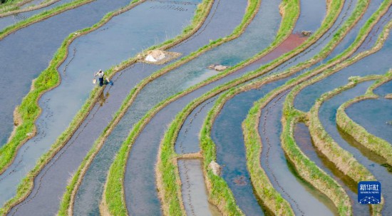 4月11日,村民在貴州省從江縣加榜鄉(xiāng)平引村梯田勞作。