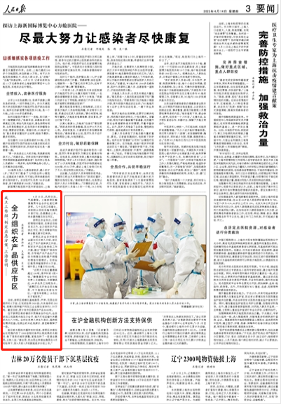 人民日報(bào):上海崇明全力組織農(nóng)產(chǎn)品供應(yīng)市區(qū)