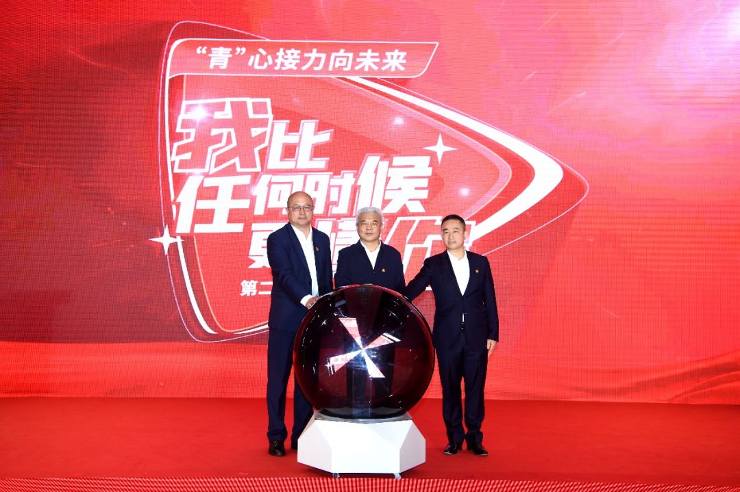 啟動(dòng)儀式現(xiàn)場(chǎng),張愛(ài)軍為融媒采訪團(tuán)記者和“青青學(xué)習(xí)團(tuán)”代表授旗。