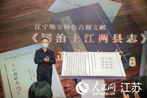 活動(dòng)現(xiàn)場(chǎng),江寧地方特色古籍文獻(xiàn)《同治上江兩縣志》正式發(fā)布。江寧區(qū)委宣傳部供圖