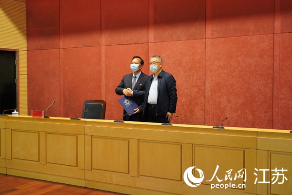 江蘇省住房和城鄉(xiāng)建設(shè)廳黨組成員、副廳長(zhǎng)、直屬機(jī)關(guān)黨委書(shū)記張鈞向王有黨頒發(fā)青年導(dǎo)師聘書(shū)。葉鵬飛攝