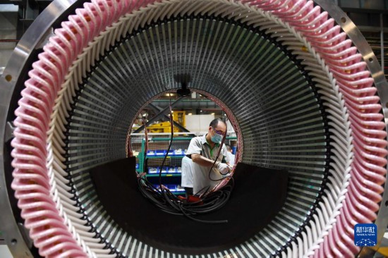 4月24日,在位于福州市的利萊森瑪電機科技(福州)有限公司,工人在發(fā)電機生產(chǎn)車間工作。