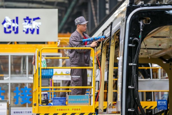 4月24日,在位于四川省宜賓市三江新區(qū)的中車鐵投軌道交通產(chǎn)業(yè)基地生產(chǎn)車間,工人在生產(chǎn)安裝智軌電車(智能軌道快運系統(tǒng))。已有多個國家和地區(qū)就智軌項目進行洽談,希望引進該項目。