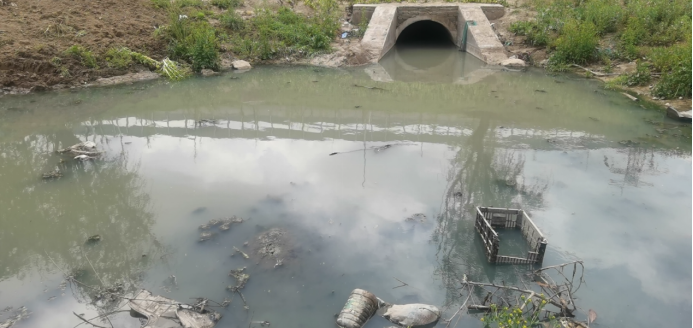 2022年4月,漣水縣四斗溝水體污染嚴重。圖片來自生態(tài)環(huán)境部微信公眾號