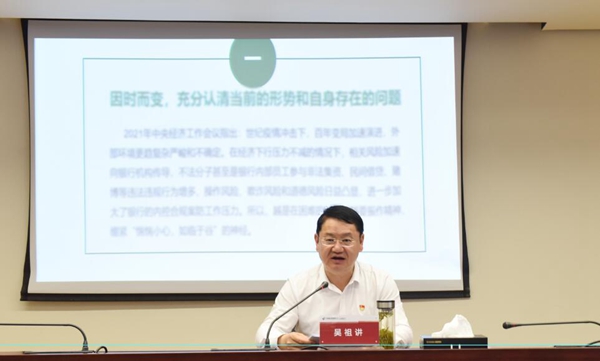 郵儲銀行江蘇省分行黨委書記、行長吳祖講深入分析了當前面臨的內(nèi)外部形勢,對全行進行了警示教育,強調(diào)全行上下要找準問題癥結(jié),扎實做好整改,舉一反三,強化問題根源性治理。