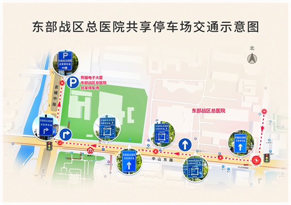 東部戰(zhàn)區(qū)總醫(yī)院共享停車場交通示意圖。南京市城市管理局供圖