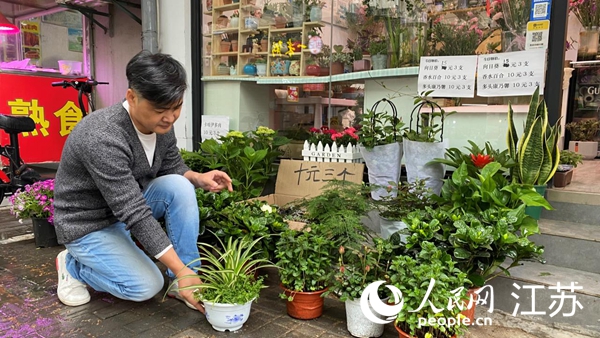 4月13日,趙勇在南京和燕路臨時擺攤做起了花卉生意。受訪者供圖
