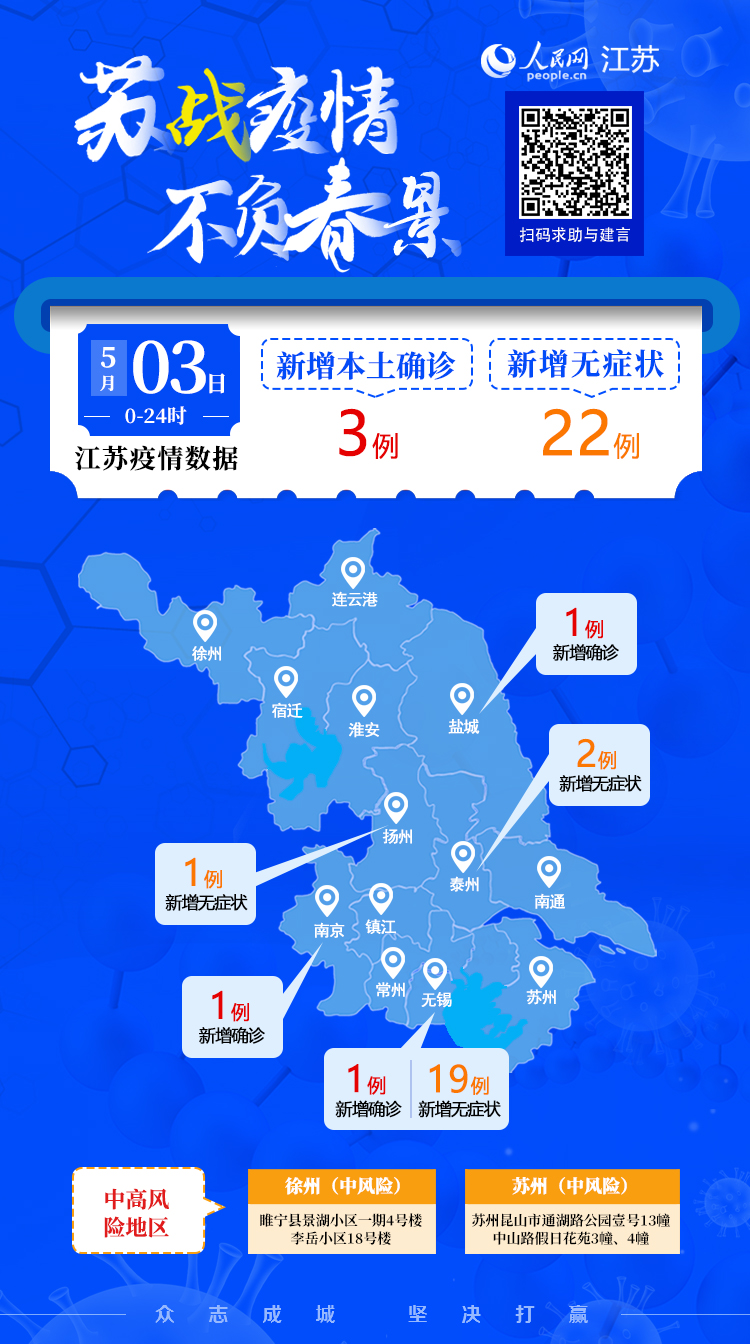 5月3日江蘇新增本土確診病例3例 本土無(wú)癥狀感染者22例