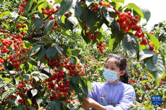 5月3日,小朋友在山東省棗莊市齊村鎮(zhèn)前良村采摘櫻桃。