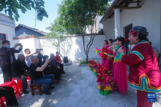 5月3日,游客在河南省信陽市光山縣司馬光小鎮(zhèn)景區(qū)看花鼓戲。