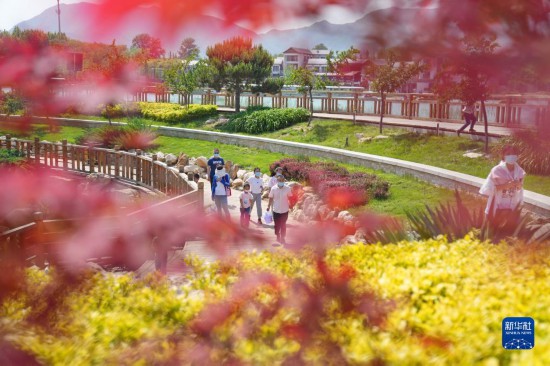 5月3日,游客在河北省石家莊市龍泉湖濕地公園內(nèi)游覽。