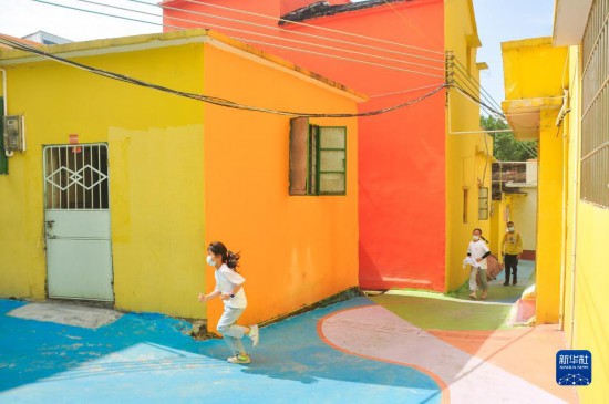 5月3日,幾名游人在廣東省江門市江海區(qū)橫坑村游玩。