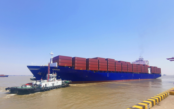 5月5日上午,在三艘大馬力拖輪的緩緩拖帶下,載有3194標箱的利比里亞籍“達飛歐尼克斯”輪(IONIKOS)駛離太倉港蘇州現(xiàn)代貨箱碼頭,這是太倉港開展整船帶貨業(yè)務以來迎來的最大到港船。