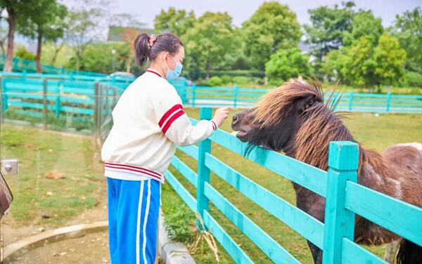 游客和景區(qū)動(dòng)物親密互動(dòng)。江蘇省金壇茅山旅游度假區(qū)管理辦公室供圖