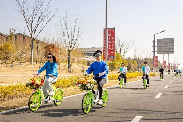游客騎著共享單車自由穿梭于景區(qū)。江蘇省金壇茅山旅游度假區(qū)管理辦公室供圖