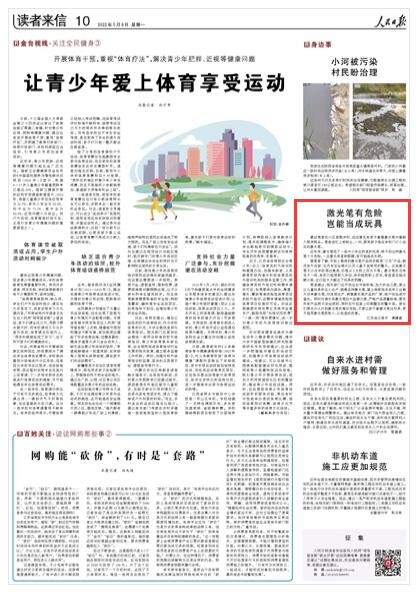 人民日?qǐng)?bào)刊發(fā)連云港讀者來信:激光筆有危險(xiǎn) 豈能當(dāng)成玩具