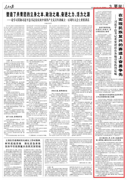 人民日報(bào):習(xí)近平總書記重要講話在各地引發(fā)熱烈反響