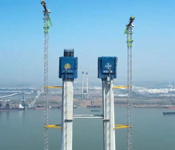 南京仙新路過(guò)江通道工程近照。南京海事局供圖