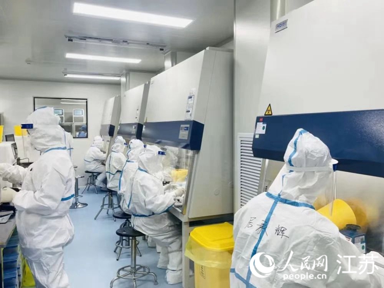 高淳人民醫(yī)院PCR實(shí)驗(yàn)室中,檢驗(yàn)科醫(yī)生們正在進(jìn)行核酸檢驗(yàn)工作。高淳宣傳部供圖