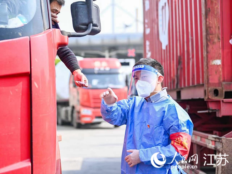 溧蕪高速高淳新區(qū)出口的檢查點(diǎn)和高速收費(fèi)站之間大約有150米。眼下,氣溫逐漸升高,為了防止司機(jī)聚集,邢盛和工作人員在這150米的距離里,每天要往返八小時(shí),走上幾百次,為司機(jī)進(jìn)行信息登記。面對(duì)出現(xiàn)紅碼人員的突發(fā)情況,邢盛都堅(jiān)持自己來處理!拔矣胸(zé)任沖在前面,減少其他工作人員心理的恐懼感!