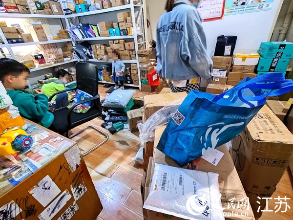 徐州一社區(qū)菜鳥驛站內(nèi)堆滿待派送的快遞。人民網(wǎng) 閆峰攝