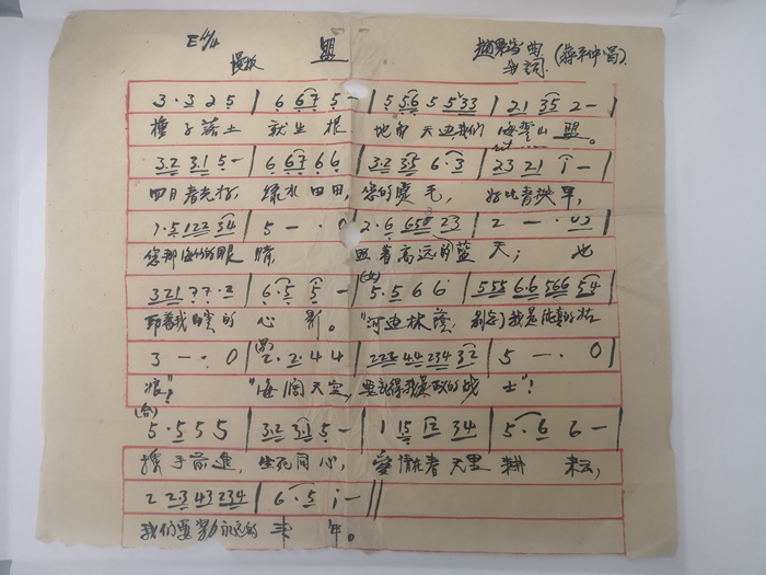 “種子落土就生根,地角天邊,我們就海誓山盟”“海闊天空,要記得我是正義的戰(zhàn)士”“攜手前進(jìn),生死同心,愛(ài)情在春天里耕耘”……一張泛黃的稿紙上寫滿了革命激情。這是二十世紀(jì)三四十年代,由趙良璋和薛介民兩位烈士共同創(chuàng)作的革命歌曲《盟》。去年3月1日,薛介民的后人將這份珍貴的手稿捐贈(zèng)給了雨花臺(tái)烈士紀(jì)念館。