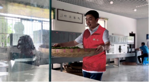 茶葉采收時(shí)節(jié),石橋鎮(zhèn)部分留守老人家中因勞動(dòng)力短缺影響茶葉采摘、晾曬!敖鹑~先鋒”志愿服務(wù)隊(duì)的成員劉平組織青年志愿者們一起幫助茶農(nóng)采春茶、搶農(nóng)時(shí)。浦口煙草供圖