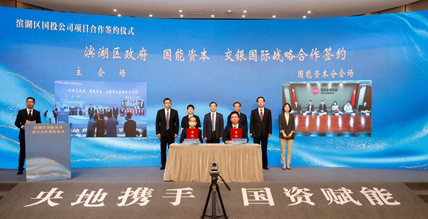 人民網(wǎng)南京5月19日電 (王丹丹)19日,無(wú)錫市濱湖區(qū)以視頻連線形式,舉行“央地?cái)y手 國(guó)資賦能”產(chǎn)業(yè)項(xiàng)目國(guó)投公司專場(chǎng)簽約儀式。此次共有8個(gè)項(xiàng)目集中簽約,涵蓋基金合作、股權(quán)投資、人才安居等多個(gè)領(lǐng)域,總投資額超110億元,濱湖(上海)中心同時(shí)啟用。