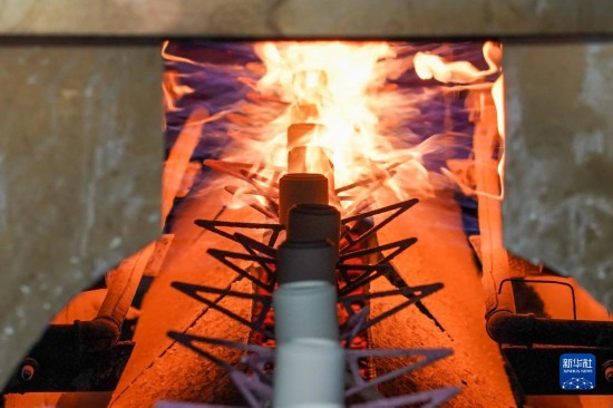 在江蘇高淳陶瓷股份有限公司生產車間,陶瓷產品在進行上釉前的加溫(5月12日攝)。