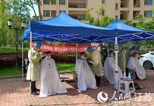 昆山市物業(yè)企業(yè)邀請理發(fā)師為業(yè)主理發(fā)。昆山市住建局供圖
