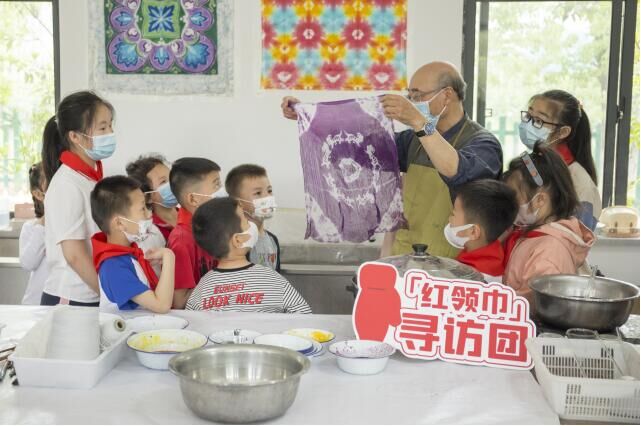 孩子們在南通非遺染坊感受扎染技藝。吳晨暉攝