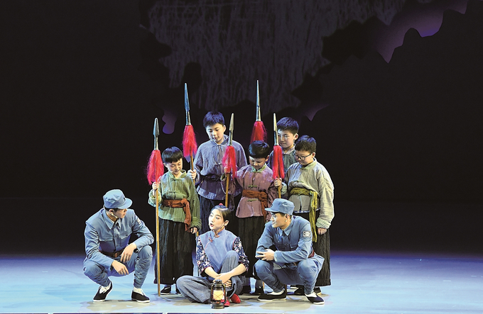 “十七載革命歲月,五萬里救亡征途,‘新旅’的故事用傳統(tǒng)敘事結(jié)構(gòu)很難完整地表達。該劇采用跨時空敘事手法,選擇典型時刻,凸顯烽火歲月里孩子們的睿智勇敢和愛國情懷。”中國兒童藝術(shù)劇院院長、該劇出品人、總編劇馮俐說。為了讓“新旅”立于舞臺,她專門要求主創(chuàng)團隊收集大量文字和圖片資料,并尋找還健在的老團員們進行多次座談,深入了解那段波瀾壯闊的歷程,把這段中國青少年兒童的非凡經(jīng)歷演繹得有血有肉。