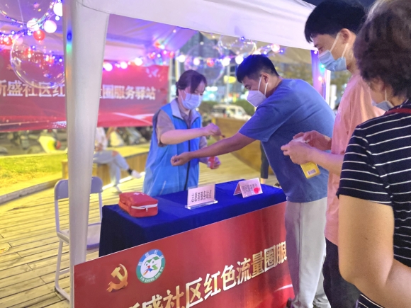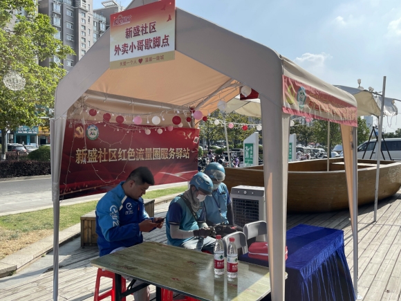 “渴了能喝水、熱了能乘涼、冷了能取暖、累了能休息,這就是我們‘紅色驛站’的大用處!毙率⑸鐓^(qū)黨總支書記馬志超介紹,為有效解決外賣員、快遞員、貨車司機等新就業(yè)群體無休息場所等問題,新盛社區(qū)依托最新打造的紅色流量圈,為“小哥們”設置了紅色驛站,讓他們更好地補足精力再出發(fā),以良好的“精氣神”在配送服務中釋放正能量。紅色驛站除了配備了座椅、應急包、礦泉水、藿香正氣水等物品,還配備了一名黨員志愿者,為他們提供皮外傷簡單處理等服務。