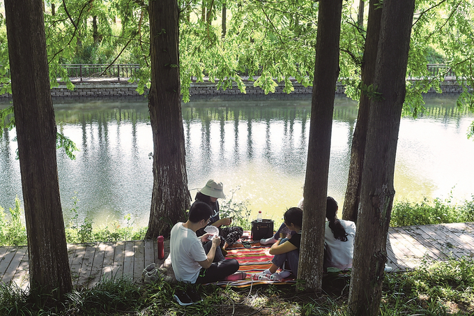 南京浦口區(qū)湯泉農(nóng)場勝利河,每逢節(jié)假日,不少市民到此休閑。 本報記者 吳俊 攝