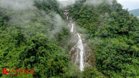 一條銀色“彩帶”藏在黎母山密林之中。人民網(wǎng) 符武平攝