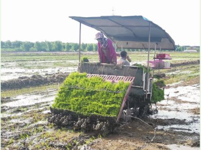 隨著全區(qū)小麥機收工作進入收尾階段,我區(qū)部分進度較快的稻麥種植主體,已經(jīng)開啟水稻插秧各項工作。據(jù)介紹,今年全區(qū)水稻計劃種植面積11萬畝,種植面積較去年穩(wěn)中有增,其中機插秧水稻約占8萬畝。圖為位于海門街道三圩村的施成農(nóng)機服務專業(yè)合作社內(nèi),工人正在進行機插秧操作。