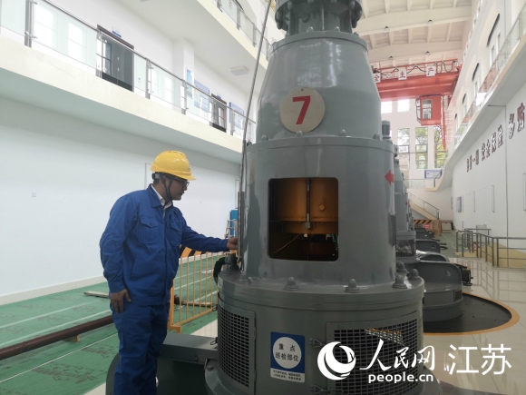工作人員在江都水利樞紐第四抽水站檢查水泵運(yùn)行。 人民網(wǎng) 張玉峰攝