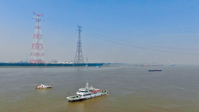 鳳城—梅里500千伏長(zhǎng)江大跨越工程跨江架線(xiàn)完工 長(zhǎng)江江蘇段同步解封