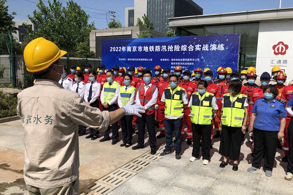 2022年南京市地鐵防汛搶險(xiǎn)綜合實(shí)戰(zhàn)演練現(xiàn)場(chǎng)。南京市水務(wù)局供圖